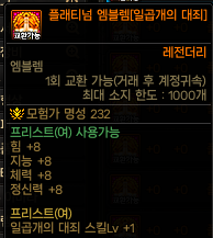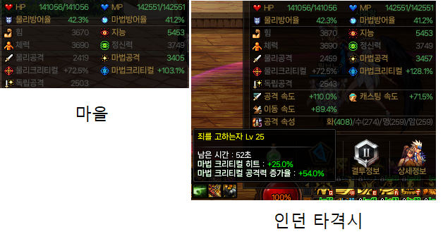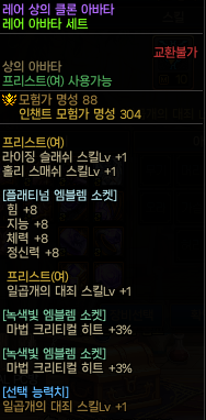 현재 셋팅기준으로 크리티컬율이 여유가 많기때문에 듀얼 찬란한 엠블렘 [지능+마법크리티컬] 을 끼우셔도 됩니다.