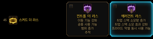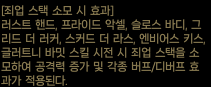 애러건트 라스 : 죄업 스택 사용시 공격속도 증가, 라스 시전 중 프라이드 악셀 사용 가능
