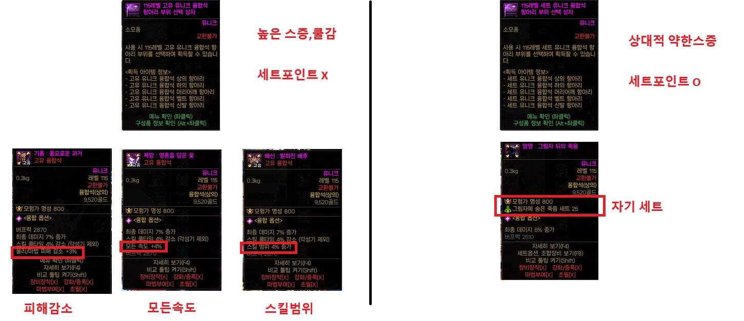 기본적으로 융합석은 방어구쪽과 악세/보조장비 쪽으로 나뉘어지는데,