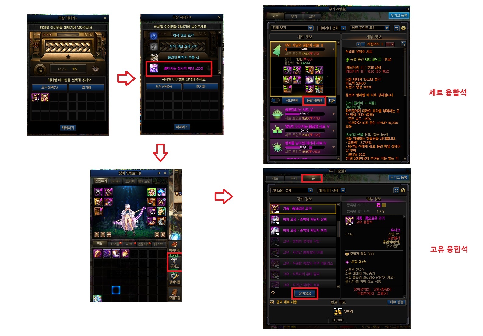 방어구는 110제 선계시즌 융합석과 115제 중천시즌 융합석으로 갈라집니다.