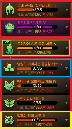 (예를들어, 위의 세트는 유니크Ⅴ아래인데, 다른세트가 레전더리Ⅰ이 넘는다던가.. 다른건 레전더리Ⅴ아래인데, 다른세트가 에픽Ⅰ이 넘는다던가 )