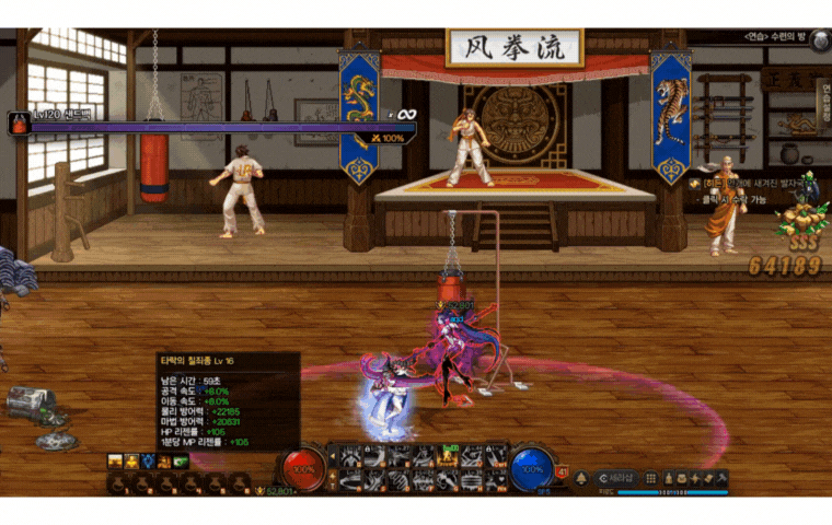 기본스킬 무거운죄업 스킬이 타격시 개체수당 HP및 MP를 회복 할 수 있기때문에 이를 자주 활용해서 HP/MP관리를 하면 포션을 아낄수 있답니다.
