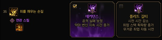 위 스킬은 죄업스택을 사용하여 7%의 최종데미지 증가 효과를 받을 수 있으므로
