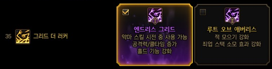 엔드리스 그리드 : 악마 스킬 시전 중(각성기 포함) 사용가능, 쿨타임 20초 →40초, 데미지 100% 증가, 다단히트 증가, 그리드 지속시간 증가