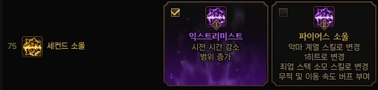 파이어스 소울 : 악마계열 스킬로 변경(스택소모시 스증7% 증가는 적용 안됩니다.) 3스택 소모시 시전 중 무적 및 이동속도 증가 (채널링 : 1초)