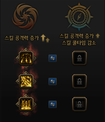 스킬강화는 본인에게 필요한 스킬을 큰폭의 데미지증가/소폭의 데미지 증가+쿨타임감소 2가지 옵션중에 선택해서 가주시면됩니다.