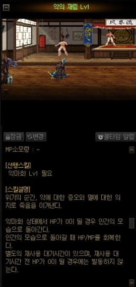 악마화 상태에서 바로 사망하게 되는 대신 악의 재림 이라는 패시브를 받게 됩니다.