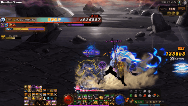 (재앙+파멸의 강타+백스텝 강화로 불합리한 패턴을 피하는 장면)