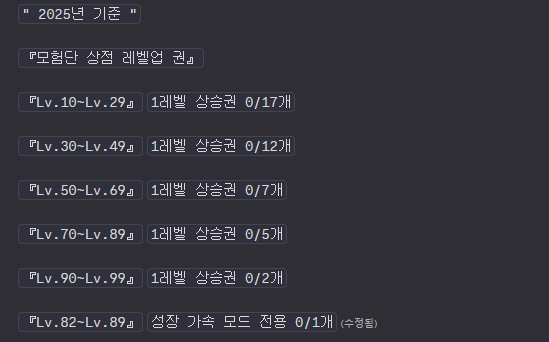 → 1레벨 상승권 1개월 0/2개 길드주화 개당 300개