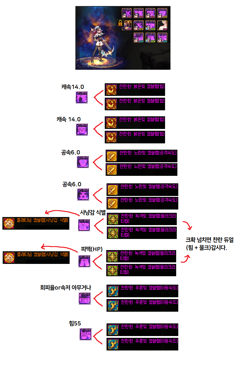 헌터는 물뎀(힘) 퍼뎀(강화) 캐릭입니다.