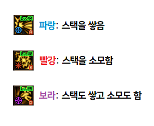 2각은 스택을 쌓지 않고 소모만 합니다. 총 5스택을 소모하니 원 하나가 있는지만 신경써주시면 됩니다.