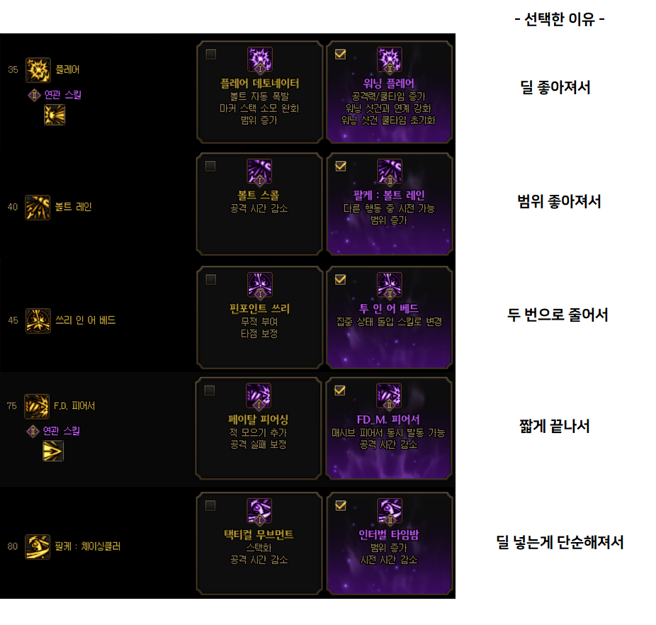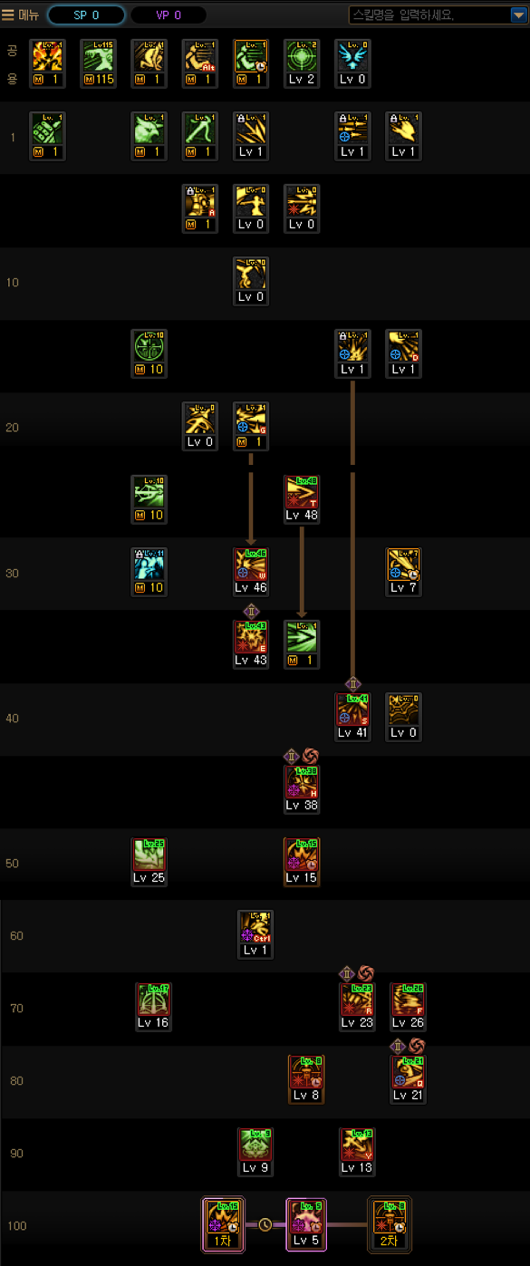 저는 큼지막하고 렙 높은 스킬들을 좋아해서 아래쪽 위주로 많이 찍어줬습니다.