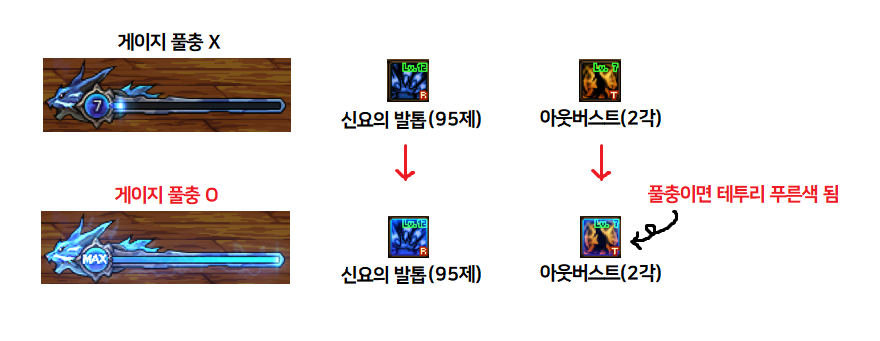 게이지에 따라서 주요 스킬들의 데미지가 달라지기 때문입니다.