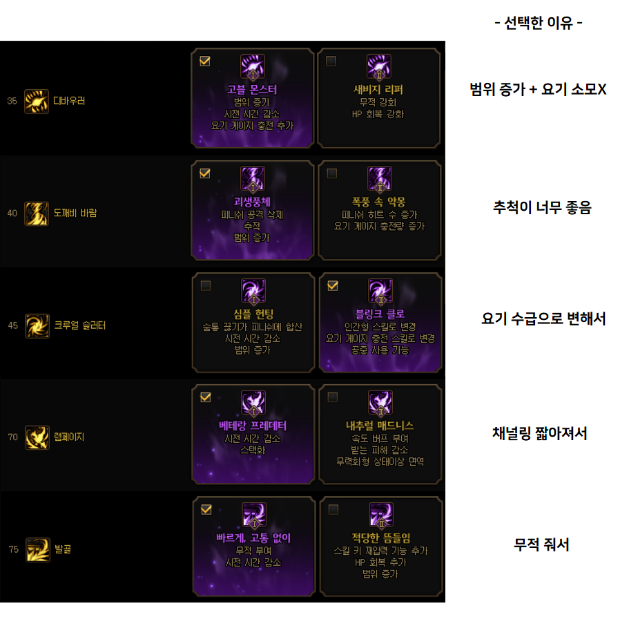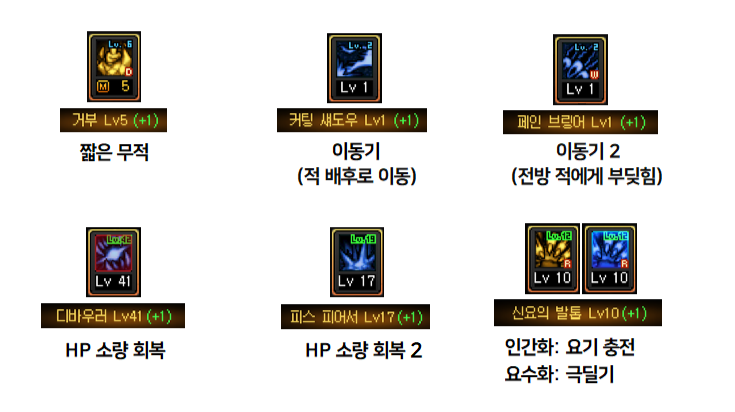 기존의 저레벨을 버리고 고레벨 스킬들을 채택했습니다.