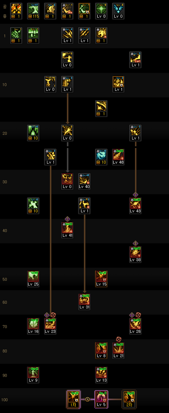 저는 큼지막하고 렙 높은 스킬들을 좋아해서 아래쪽 위주로 많이 찍어줬습니다.