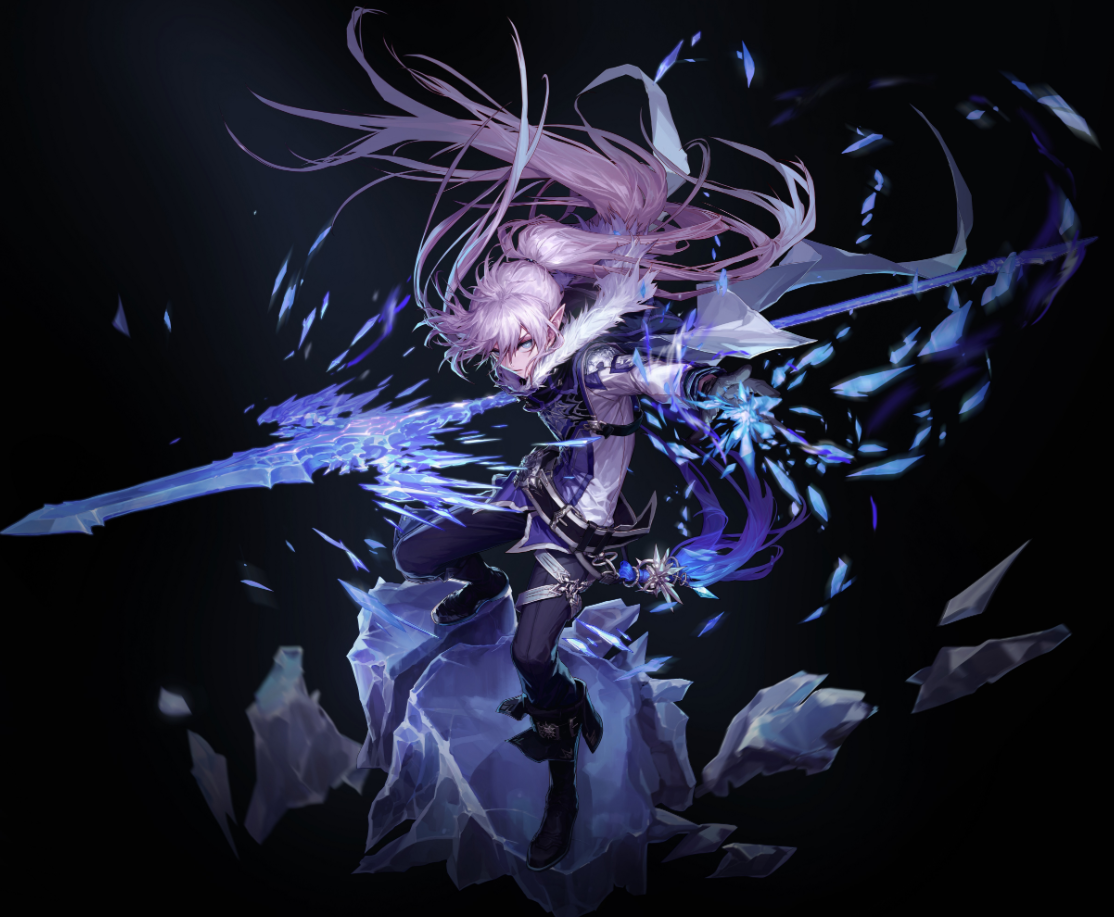 얼음무기를 만들어 공격하는 근접 캐릭터