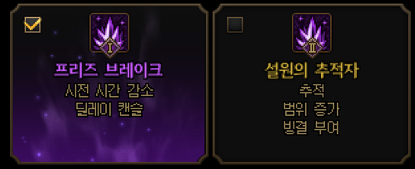 - 개인적으론 프리즈 브레이크 추천합니다 설원의 추적자의 경우 막타에 몰려있어 딜누수 가능성 높고 타스킬 캔슬이 불가능합니다.