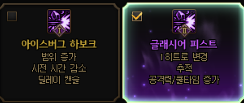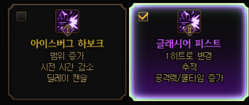 - 75제 글래시어 피스트 (추적 + 쿨타임 증가 특히 세렌디피티 또는 칠흑 채용시 좋음)