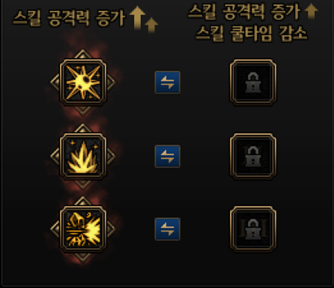 (아래처럼 세팅하면 스킬 3개가 쿨이 비슷하게 세팅되기 때문에, 묶어서 사용하면 편리합니다.)