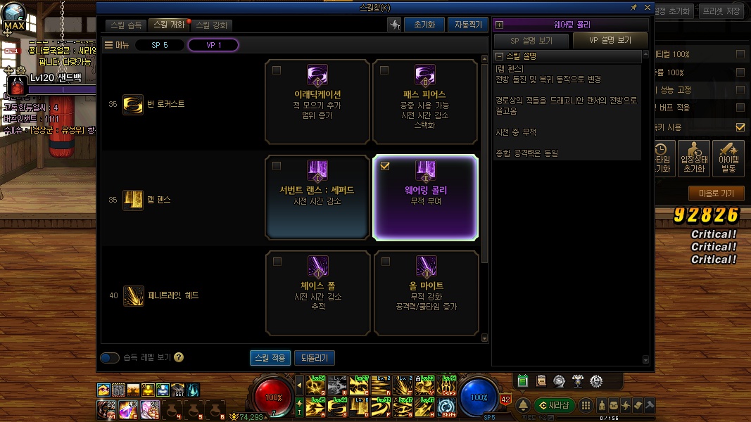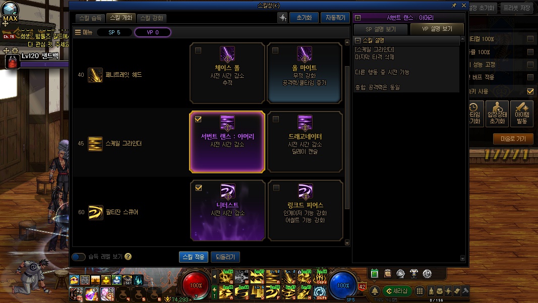 스킬 강화같은 경우는 자신의 쿨감 상황에 따라 적절하게 섞어주시면됩니다
