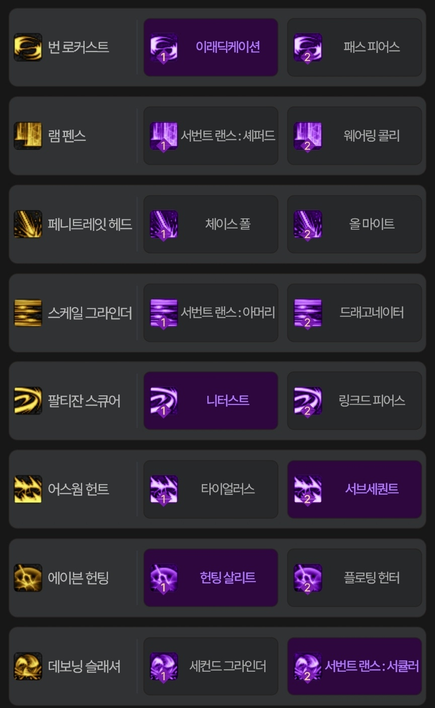 서번트 랜스 재 생성 시간이 -0.15% 감소되고 1레벨당 스증뎀이 2% 상승합니다