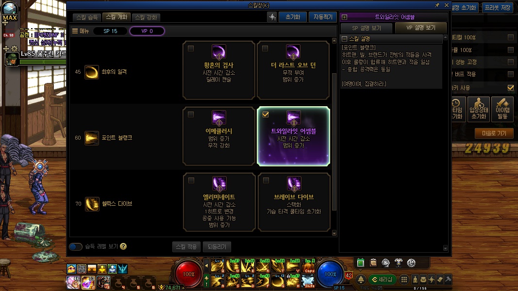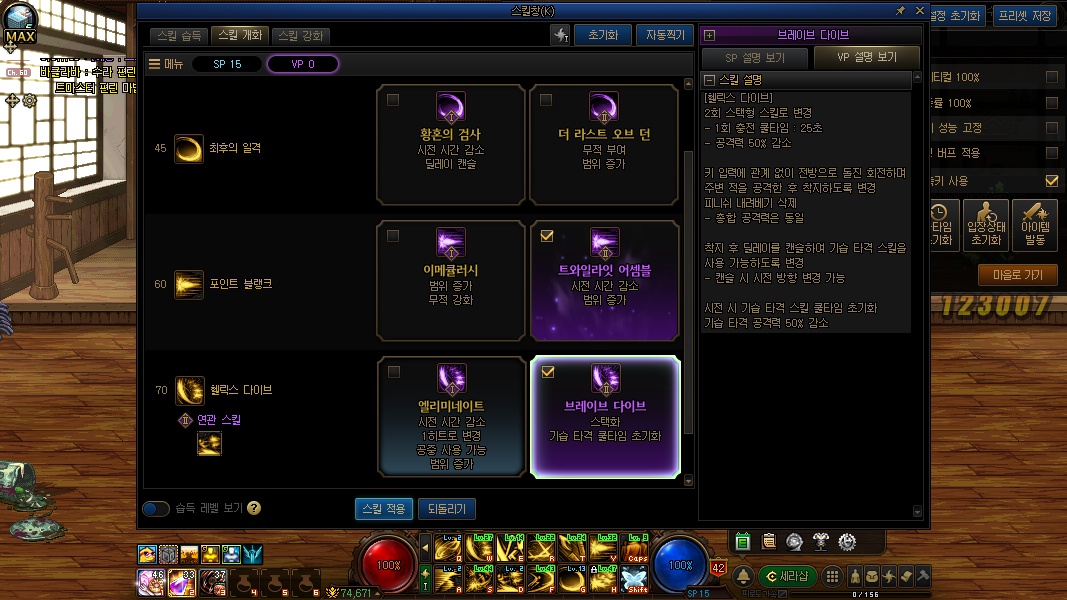 현재 45제 스킬들은 스킬 포인트는 많이 잡아먹는데 쿨타임은 길게 형성되있어서 대부분의 직업이 버리는 스킬 레벨대거든요