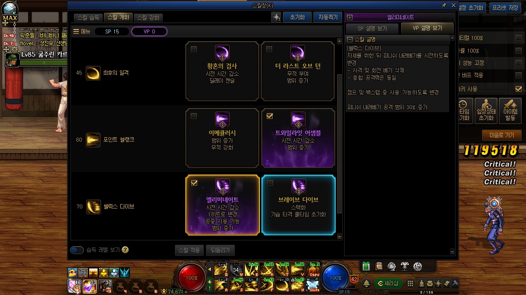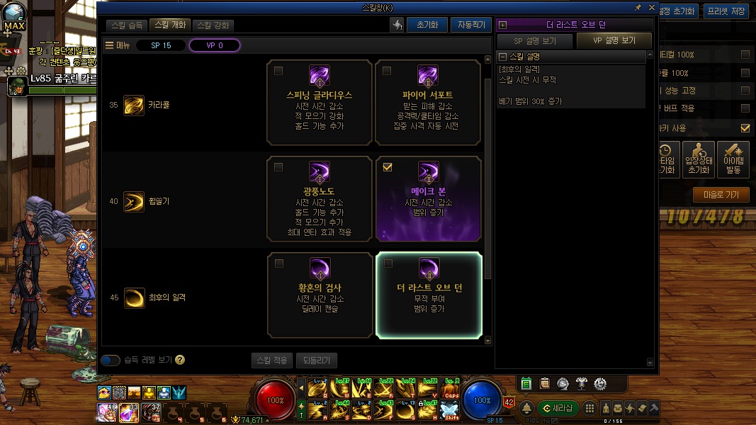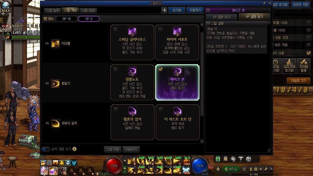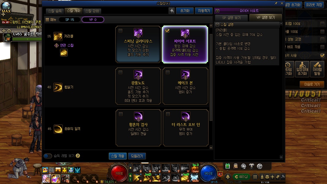 스킬 강화같은경우는 본인의 쿨감 상황에 맞게 유도리있게 조절하시면됩니다