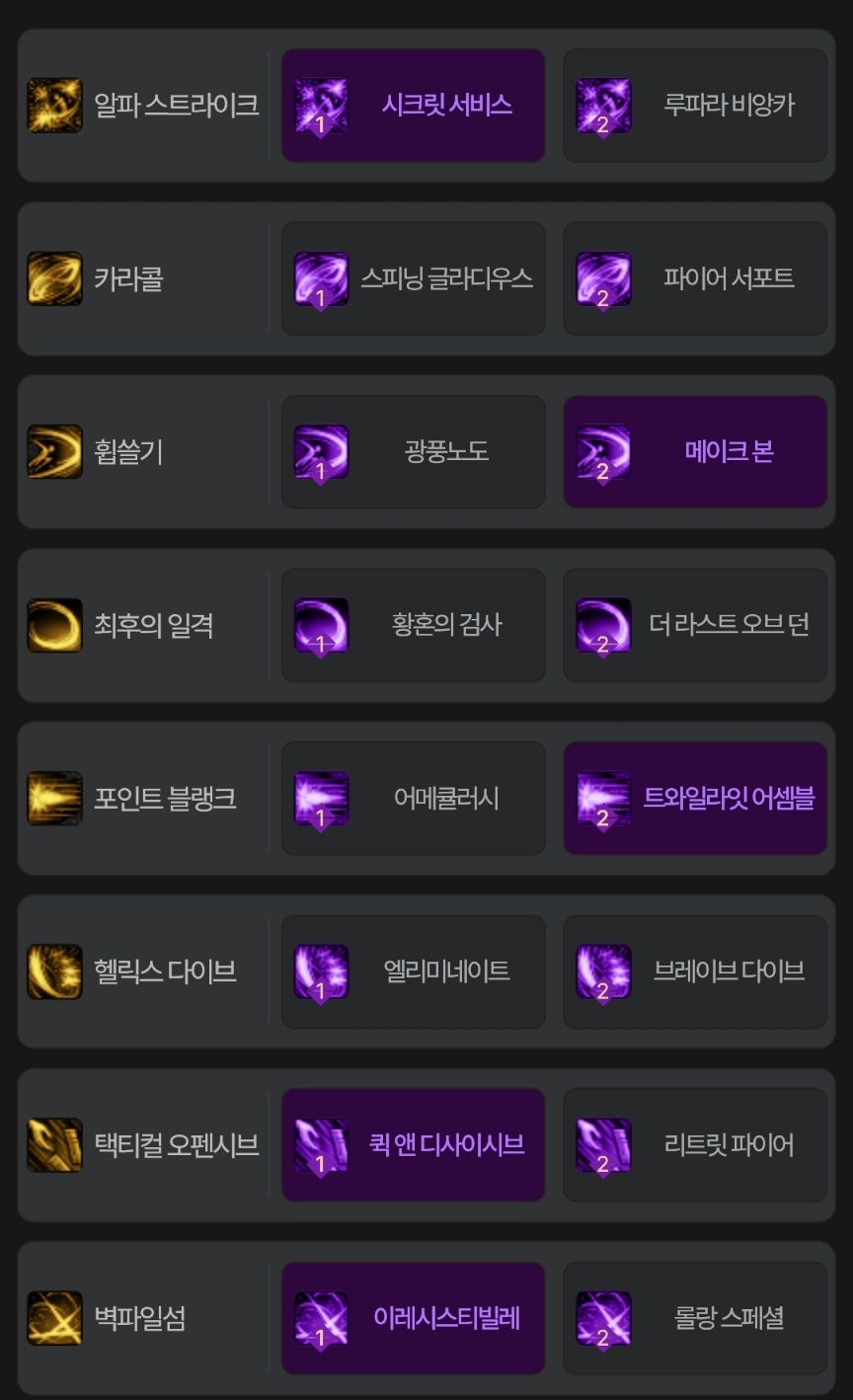-> 우선 현재 메타가 45제 스킬을 대부분이 버리는 스킬 레벨대입니다