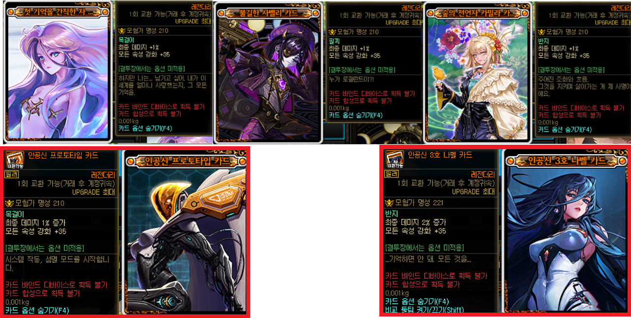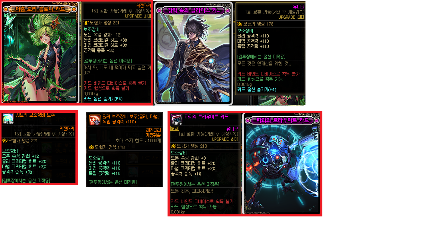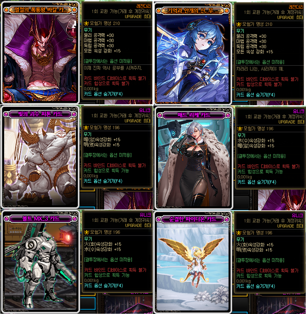 (다만 전시즌 종결인 바칼/테르미누스 카드는 경매에서 교환불가 보주는 500-1000만정도에서 거래됩니다)