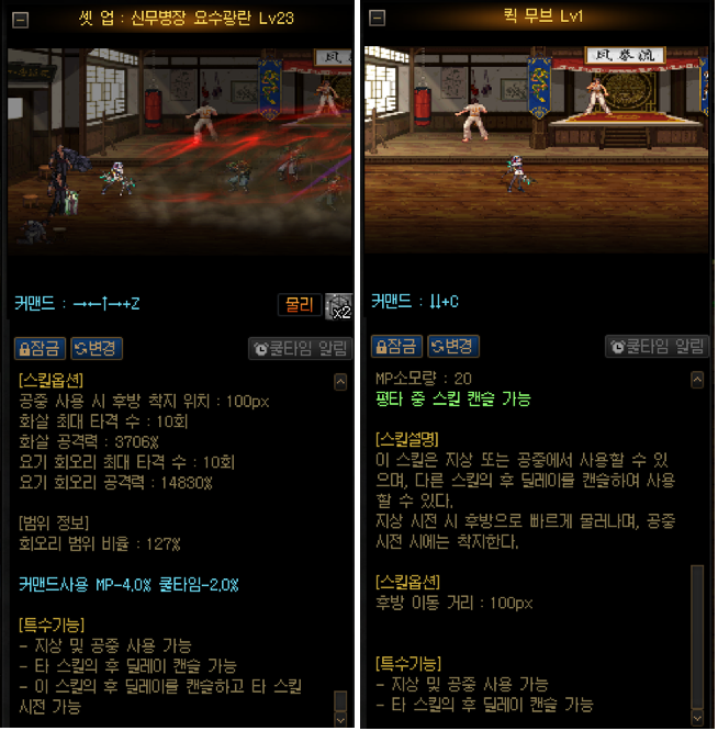 퀵무브/요수광란에는 바로 지상착지 기능이 있어서