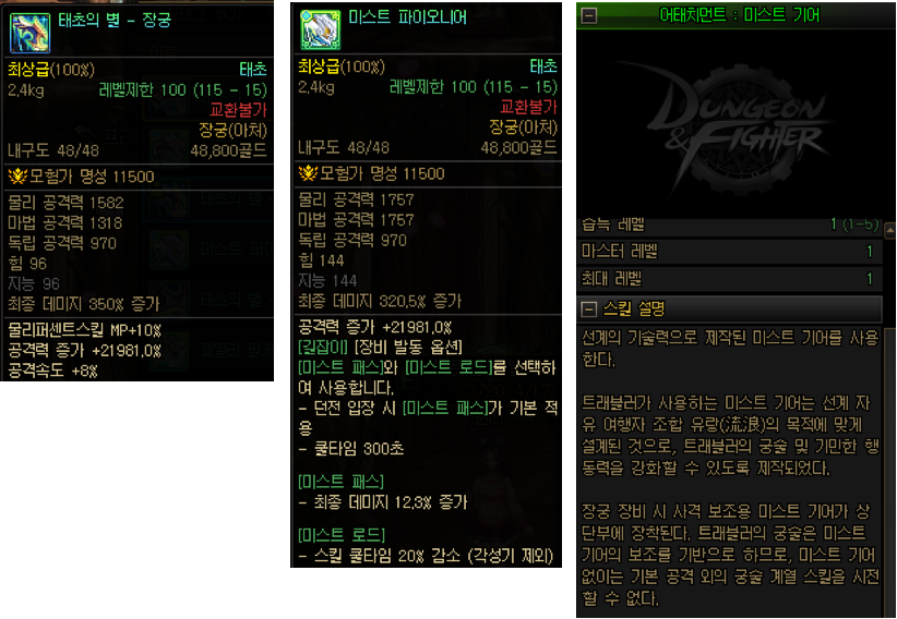 아처 직업군의 경우 직업마다 전용 무기만 착용이 제한되기 때문에