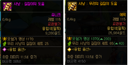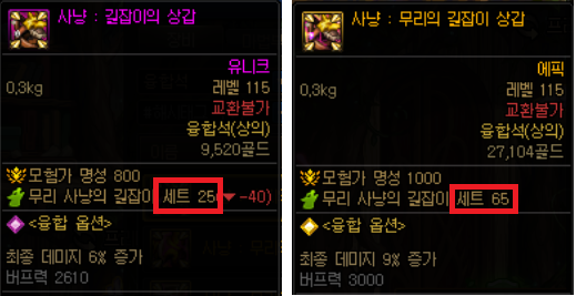 에픽 장비의 경우 65포인트를 지급합니다.