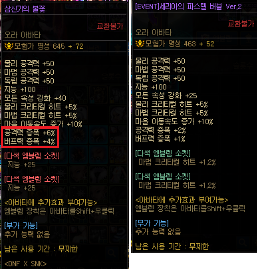다만 가격대비 성능은 별로기 때문에 님파/무용담마부를 추천합니다.