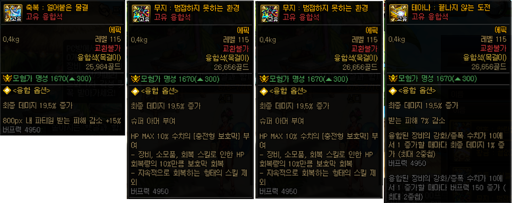 2. 고유 융합석( 나벨 ) -악세/특수장비 각 4종-
