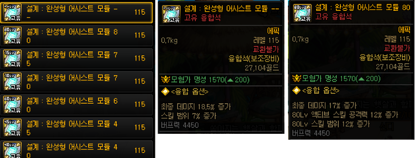 다만 특수장비 부위의 경우 종류 35~80제 + 단순범위증가 까지 그 종류가 매우 다양하고