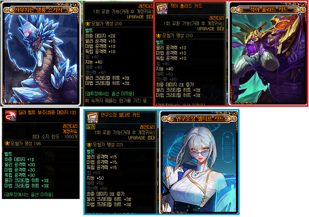 쿨타임이 길거나 빠르게 스킬을 쓰는 직업들에게는 추천하는 장비입니다.