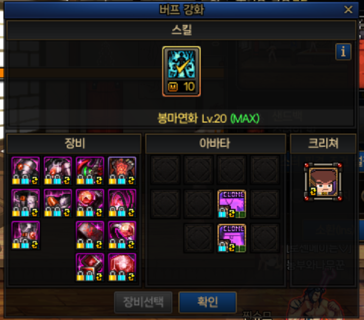 스킬레벨대는 20 그대로니 칭호는 [불][물] 봉마연화+2 크리쳐는 20레벨+1이나 봉마연화+1로 하시면 됩니다