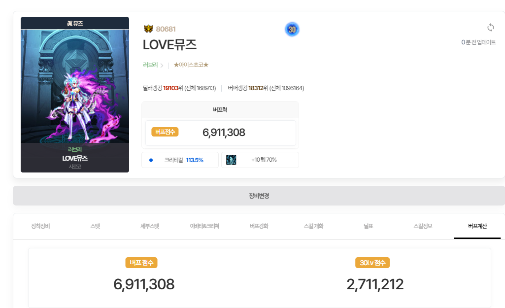 남크루세이더 여크루세이더 인챈트리스 뮤즈, 버퍼 4직업 전부와 그 중에 뮤즈를 3캐릭(LOVE뮤즈/Lovely뮤즈/뮤즈야비트줘) 키우는 유저로서