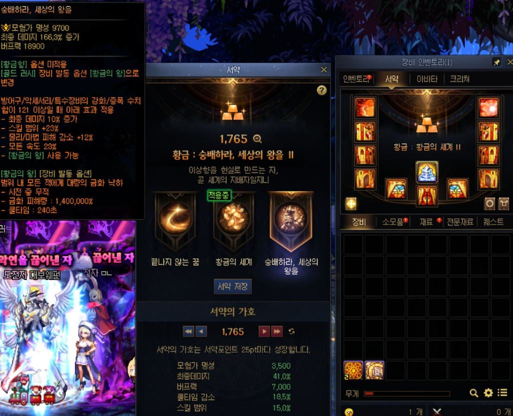세트 구분 없이 바로 바로 착용해주시다가 나중에 '무기고'에서 1200포인트 가까이 된 세트를 찾아