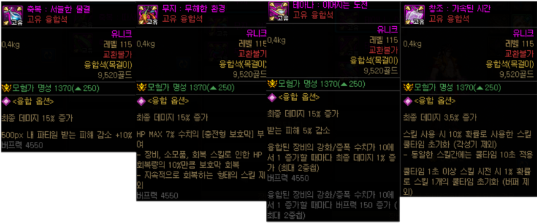 새로 추가된 나벨 융합석의 경우 태초 포인트까지 세트 포인트를 채우는 세트 융합석을 위주로 사용하시면 됩니다.