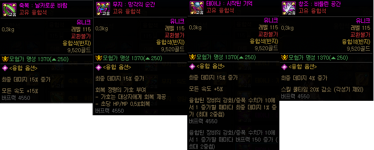 초반에는 태초 포인트를 찍기 위해 대부분 융합석을 세트로 채용하시는 것이 딜 증가값이 높습니다.