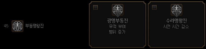 수라명왕진은 부동명왕진을 설치기로 바꿔주며 시전 시간이 감소합니다.