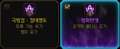 빙화만개는 극파동검 빙인의 데미지가 100%늘어나며 쿨타임도 40초로 변경되고,