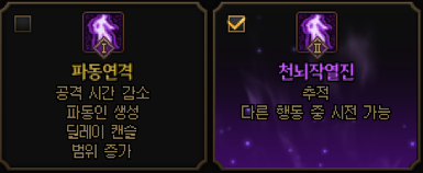 천라뇌망은 딜레이 캔슬로 작열파동진이 사용 가능 하게되며, 후딜레이 캔슬로 작열파동진 사용이 가능하게 됩니다.