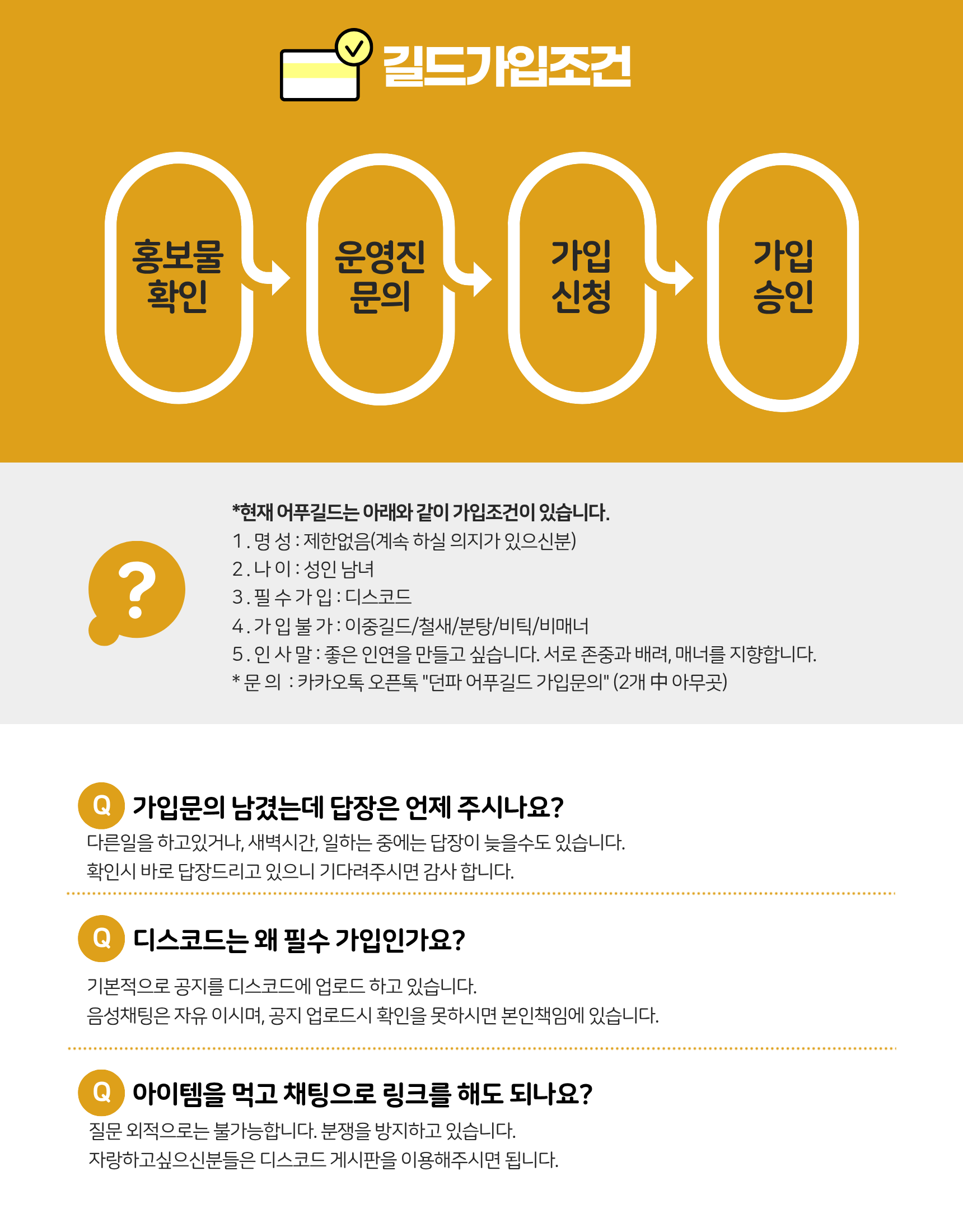 서로 존중하며 화목하게 길드를 만들어 가실 분들! 지금 바로 어푸 길드와 함께!!!