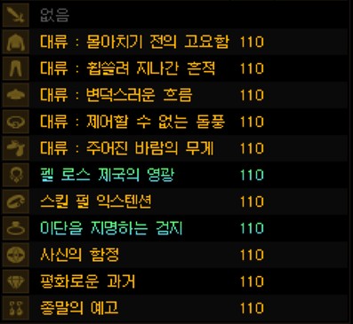 데미지 위주의 무난한 세트입니다. 속도 관련 외에는 유틸이 존재하지 않기 때문에, 별도의 쿨타임 감소 세팅(너클 레거시, 나벨 고유 창조 반지 등)이 요구됩니다.