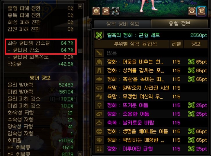 ② 칠흑의 정화 세트를 착용하지 않은 경우 : 가능한 모든 쿨타임 감소 융합석 위주로 파밍