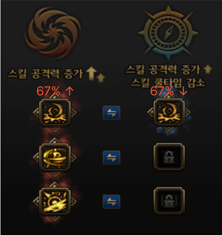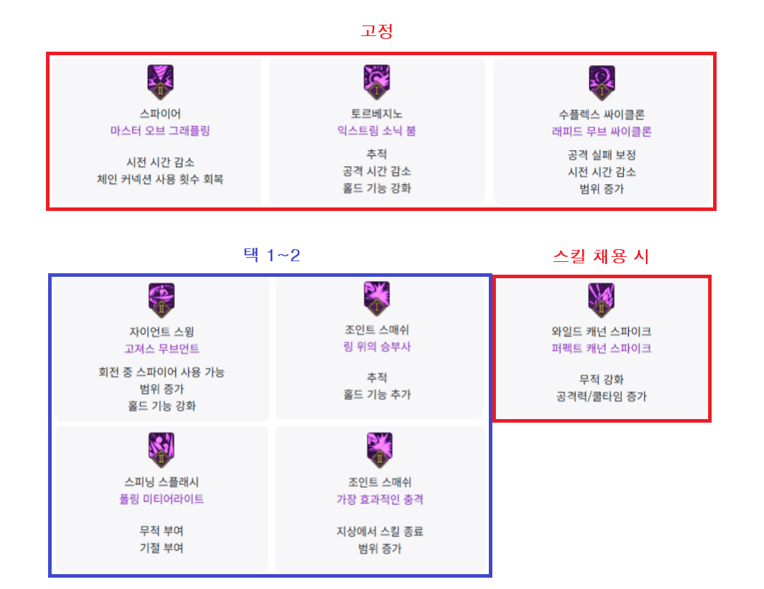 이를 위해서는 본인의 쿨타임 세팅에 따라 스킬 강화를 유동적으로 투자하시길 권하고 있습니다.