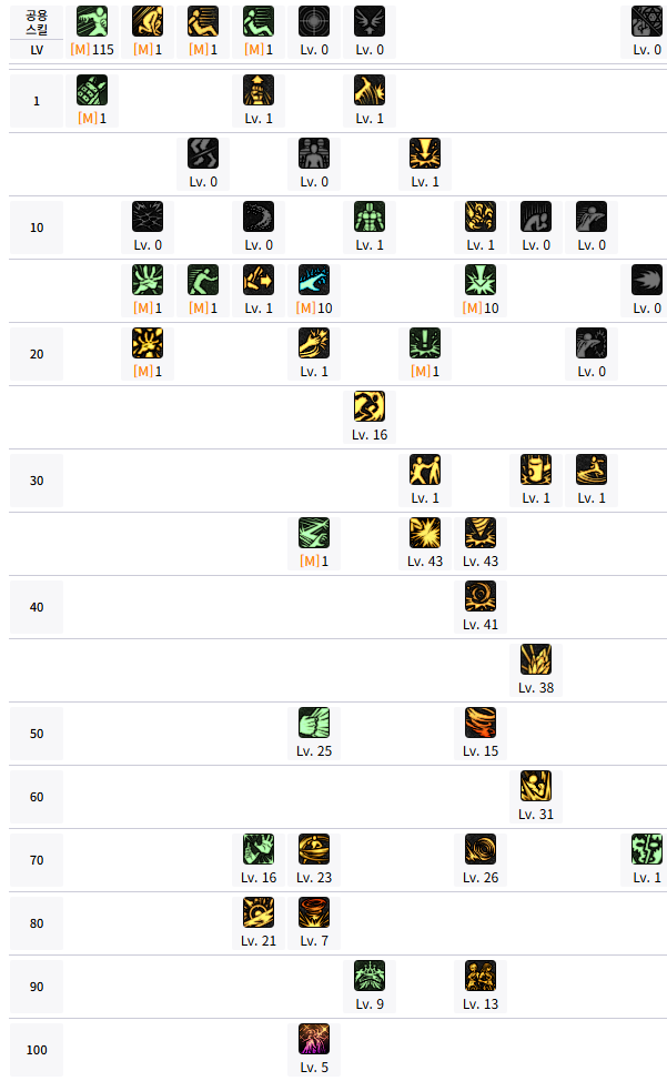 '칠흑의 정화' 세트 착용 기준, 외부 사이트의 딜표를 가장 높게 뽑아낼 수 있는 스킬트리입니다. 실전에서의 사용은 권장하지 않습니다.