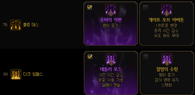 쿨타임 감소율이 낮은 경우 '절망의 수렁'을 추천드립니다.